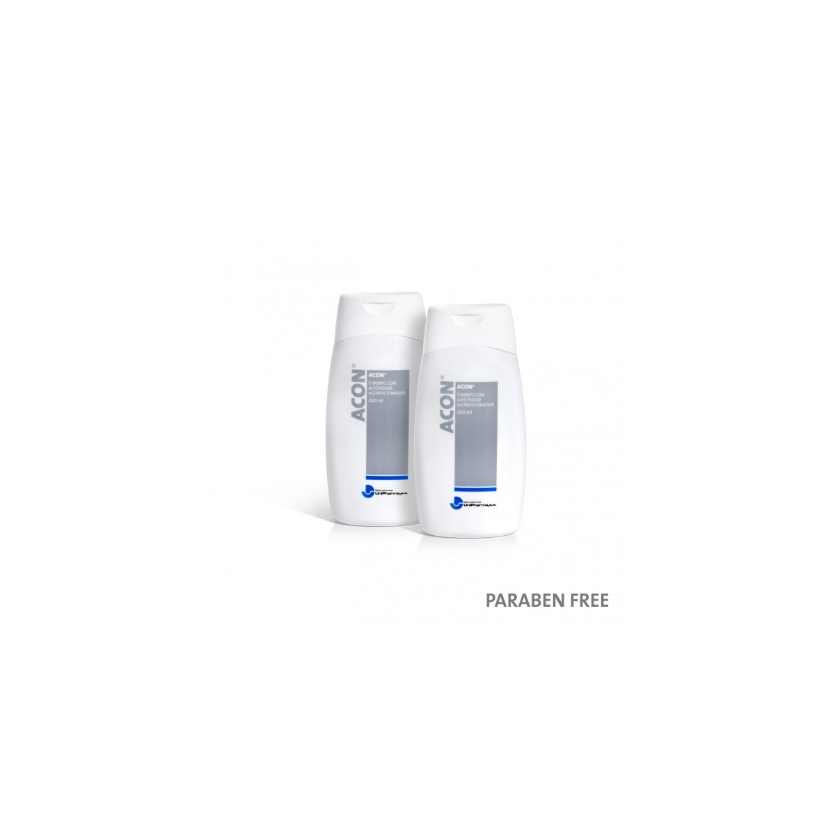 Acon champú está indicado para todo tipo de cabello, de uso diario y con un alto poder acondicionador. Acon Champú está dotado de propiedades emolientes que permiten asegurar una suave y eficaz limpieza del cuero cabelludo, manteniéndolo limpio durante más días. La acción del acondicionador regenera en cada aplicación la envoltura protectora capilar, alterada continuamente por factores irritantes. Champú de uso diario. Alto poder acondicionador. Libre de parabenos. 200ml por envase.
