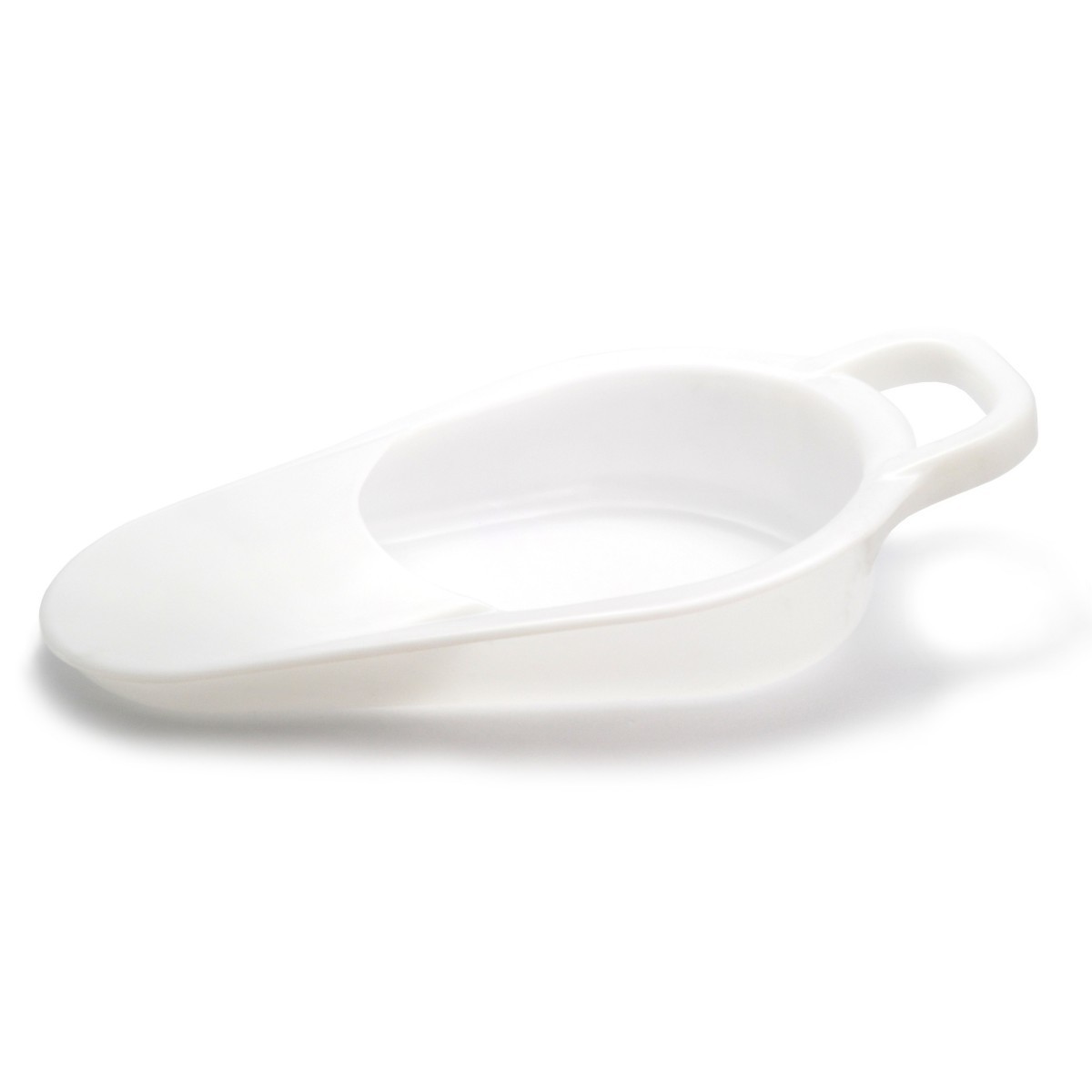 Orinal clínico plástico cuña. Composición: Polietileno Alta Densidad ( HDPE) Para las personas encamadas, o que no pueden levantarse. Sujetarlo por el asa en posición horizontal con el orificio en la parte superior. Colocar por debajo de la persona hasta situarlo a la altura de la zona glútea. Color blanco.